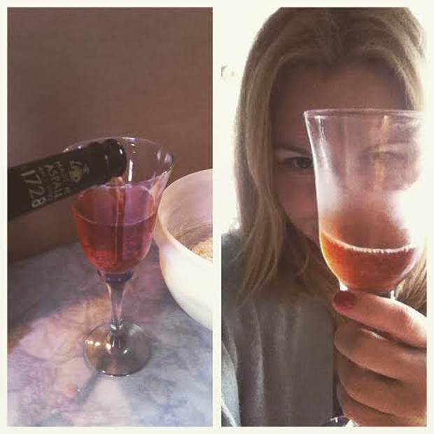 Το Perronelle’s διαθέτει μια γλυκιά γεύση μήλου και βατόμουρου, την οποία συνδύασα με ξύσμα λεμονιού και λίγο σιρόπι από κομπόστα ροδάκινο. Το γλάσσο το έφτιαξα ζεσταίνοντας βανίλια-υποβρύχιο του Μπαριάμη με γεύση λεβάντα κι αφού άρχισε να ρευστοποιείται, πρόσθεσα μέσα λίγο Perronelle’s και βγήκε ένα σιρόπι απίθανο. Περιέχυσα με αυτό το κέικ μου και σε κάθε μπουκιά χαμογελάω!