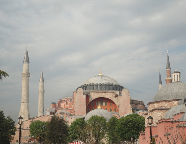 Τα κυριότερα μνημεία της Πόλης απαντώνται στην πλατεία Σουλτάναχμετ. Η Αγία Σοφία (πλέον με επιπρόσθετους 4 μιναρέδες) και απέναντι το Μπλε Τζαμί (με 6 μιναρέδες) –το οποίο έχτισε ο σουλτάνος Αχμέτ Α’ από τον οποίο ονομάστηκε και η πλατεία. Η Αγία Σοφία –που ονομάστηκε έτσι προς τιμήν της Αγίας του Θεού Σοφίας- αποτελεί αρχιτεκτονικό κομψοτέχνημα που μετρά πάνω από 1400 χρόνια ύπαρξης. Χτίστηκε τον 6ο αιώνα μ.Χ. από τον αυτοκράτορα Ιουστινιανό, μετά από άλλες 2 εκκλησίες που είχαν χτιστεί και γκρεμιστεί. Από τον πρώτο ναό του 4ου αιώνα δεν σώζεται τίποτα απολύτως ενώ από τον δεύτερο του 5ου αιώνα, υπάρχουν κάποια ελάχιστα σπαράγματα ιχνών. Τον 15ο αιώνα οι Οθωμανοί προσέθεσαν στην Αγία Σοφία τους μιναρέδες και τις σούρες στο εσωτερικό της και τη μετέτρεψαν σε τζαμί. Συλλογιζόμενος κανείς τι ακριβώς συμβολίζει αυτό το μαγευτικό κτίσμα, θα νιώσει το δέρμα του να αναριγεί. Κοιτάζοντας δε τα ψηφιδωτά αλλά και τα διαφορετικά είδη και σχέδια μαρμάρων που έχουν διαλεχτεί με απαράμιλλη προσοχή θα μείνει σίγουρα άνευ προηγουμένου εντυπωσιασμένος. (είσοδος 30 τούρκικες λίρες)