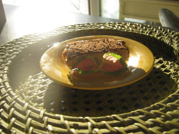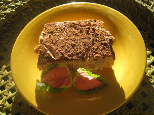 Έλα όμως που εκείνο το απόγευμα είχα τρελή όρεξη για ζαχαροπλαστική και φυσικά για δοκιμές! Λαχταρούσα μια παχιά κρέμα ζαχαροπλαστικής, αλλά όχι λευκή. Ήθελα κάτι πιο ξεχωριστό, πιο τσαχπίνικο! Κι έτσι έφτιαξα άλλη μια βάση με τριμμένο μπισκότο, λιωμένο βούτυρο και σκούρο κακάο και κονιάκ. Την έβαλα στην κατάψυξη και χτύπησα για λίγα λεπτά την κρέμα ζαχαροπλαστικής με την αντίστοιχη ποσότητα φρέσκου γάλακτος. Λίγο πριν σταματήσω το χτύπημα, πρόσθεσα μισό φλιτζάνι διαλυμένο στιγμιαίο καφέ σε νερό και βγήκε μια γοητευτική κρέμα μόκας, ιδανικό στολίδι για τα μπισκοτάκια μου! Την άπλωσα πάνω στη βάση, την έβαλα στο ψυγείο να παγώσει και λίγο πριν το σερβίρισμα, πασπάλισα το γλυκό μου με σκούρο κακάο!