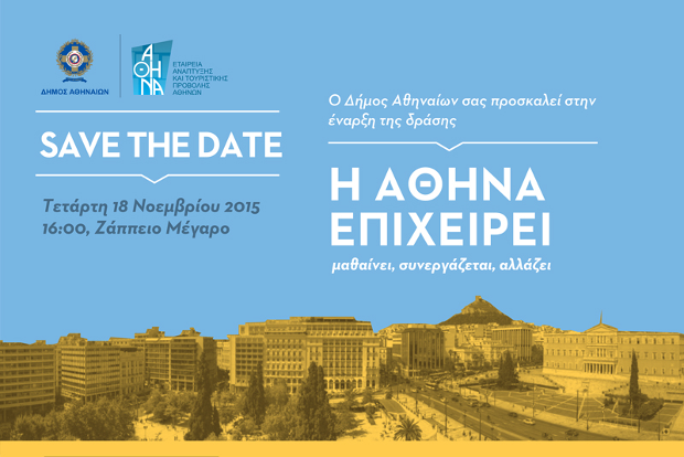 Η πρόθεση του δήμου Αθηναίων είναι να στηρίξει όλες τις αξιόλογες επιχειρηματικές πρωτοβουλίες που αναπτύσσονται στην πόλη και εντάσσεται στη συνολική αναπτυξιακή στρατηγική για την περίοδο 2015-2020. «Η Αθήνα Επιχειρεί» μαθαίνει – συνεργάζεται – αλλάζει. Η εναρκτήρια εκδήλωση θα γίνει στο Ζάπειο Μέγαρο την Τετάρτη 18 Νοεμβρίου και με με ομιλητές τον δήμαρχο Αθηναίων κ. Γιώργο Καμίνη και τον CEO του Startup Lisboa κ. Joao Vasconcelos και τον κ. Άρη Δρόση, Επικεφαλής Τεχνολογικού Κέντρου Αθήνας της Nokia Networks Hellas.