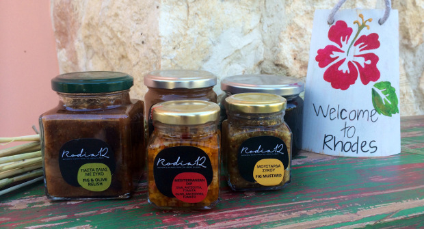 Μελλοντικά θα το θέλαμε και θα το επιδιώξουμε τόσο για τα χωριά της Ρόδου όσο και για όλα τα Δωδεκάνησα. Ξεκινήσαμε με το σκεπτικό να φτιάξουμε 5-6 προϊόντα και αυτή τη στιγμή έχουμε περίπου 15 γιατί είναι τόσες οι ιδέες μας και οι δυνατότητες που υπάρχουν, που πραγματικά μας είναι δύσκολο να κάνουμε τις απαραίτητες επιλογές. Αποφασίσαμε να ξεκινήσουμε πιλοτικά για την πρώτη χρονιά με κάποια βασικά προϊόντα και να προσθέτουμε σιγά σιγά. Η αρχική ιδέα ήταν να ασχοληθούμε με αυτά που όλοι έχουμε στο μυαλό μας ως παραδοσιακά όπως είναι τα γλυκά του κουταλιού που στην πορεία είδαμε όμως ότι στην αγορά ήδη υπήρχαν σε διάφορες μορφές και ποιότητες για αυτό προσπαθήσαμε να προσφέρουμε κάτι καινούργιο βασισμένο πάντα στον παραδοσιακό σπιτικό τρόπο παρασκευής και φυσικά σε ντόπια προϊόντα. Φτιάξαμε λοιπόν μαρμελάδες με ιδιαίτερα αρώματα, όπως πχ μαρμελάδα λεμόνι με θυμάρι, μαρμελάδα φράουλα με λεβάντα, μαρμελάδα ελιάς με λεμόνι. Έχουμε επίσης αλμυρά ορεκτικά όπως είναι οι αγκινάρες με λάδι και λεμόνι, πάστα ελιάς με σαρδέλα και καυτερή πιπεριά, κάπαρη, κρίταμο και σταμναγκάθι, αλλά και ανθό αλατιού άγρια ζαφορά και άλλα βότανα από την Αστυπάλαια. Εκτός από τη Ρόδο και την Αστυπάλαια θέλουμε να έχουμε προϊόντα και από άλλα νησιά της Δωδεκανήσου για αυτό και η πρώτη σειρά προϊόντων μας ονομάστηκε Rodia 12.Στόχος μας είναι να διαθέσουμε στην αγορά προϊόντα ποιοτικά σε περιεχόμενο, με ενδιαφέρουσες γεύσεις, σε όμορφες συσκευασίες και με δελεαστικές τιμές. Διαθέτουμε επίσης χειροποίητες συσκευασίες δώρου που εμπλουτίζουμε συνεχώς με νέα σχέδια ώστε να μπορεί ο επισκέπτης να πάρει μαζί του.