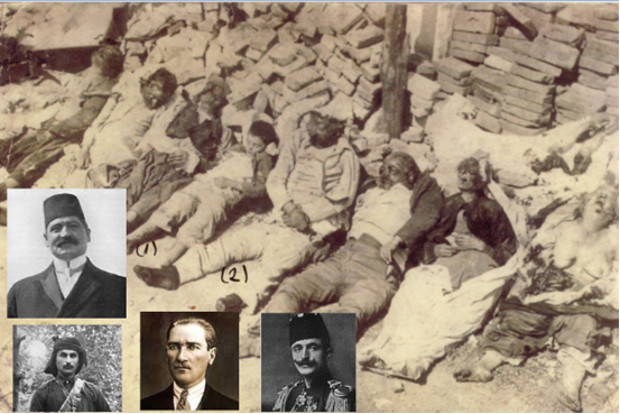 Οι 4 βασικοί συντελεστές της Ελληνικής γενοκτονίας που διήρκεσε σχεδόν δέκα χρόνια (1914-1923). Topal Osman Agha το κτήνος για τις βρώμικες δουλειές, Κεμάλ Μουσταφά, ο Τούρκος Πατέρας που εξόντωσε χιλιάδες Έλληνες πατεράδες με τις οικογένειές τους, ο Ενβέρ Πασάς, από τους τελευταίους ισχυρούς άνδρες της Οθωμανικής Αυτοκρατορίας και ο Ταλαάτ Πασάς, ο κύριος αρχιτέκτονας της γενοκτονίας. Σχεδόν 1,5 εκατομμύρια Έλληνες χάθηκαν από προσώπου γης χάρη στην κτηνώδη εκστρατεία των 4 κυρίων.