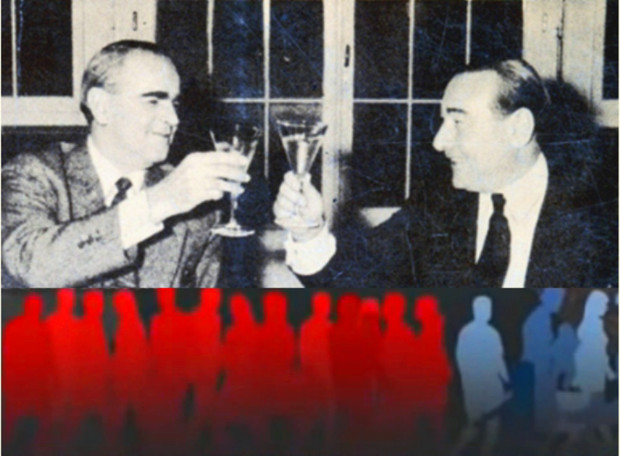 Μπορεί ο Κωνσταντίνος Καραμανλής να μην βρήκε έναν Έλληνα να πιει ένα ποτηράκι να γιορτάσει αυτό το ευχάριστο γεγονός –εκτός από κάτι κρετίνους συνεργάτες σαν τον Αβέρωφ- αλλά με ένα χαμόγελο crest τσούγκρισε την σαμπάνια του με αυτή του Τούρκου ομόλογού του, (φωτογραφία) του οποίου βέβαια γελούσαν και τα μουστάκια με την βλακεία του Έλληνα πρωθυπουργού. Τον έβγαλε από πολύ κόπο.