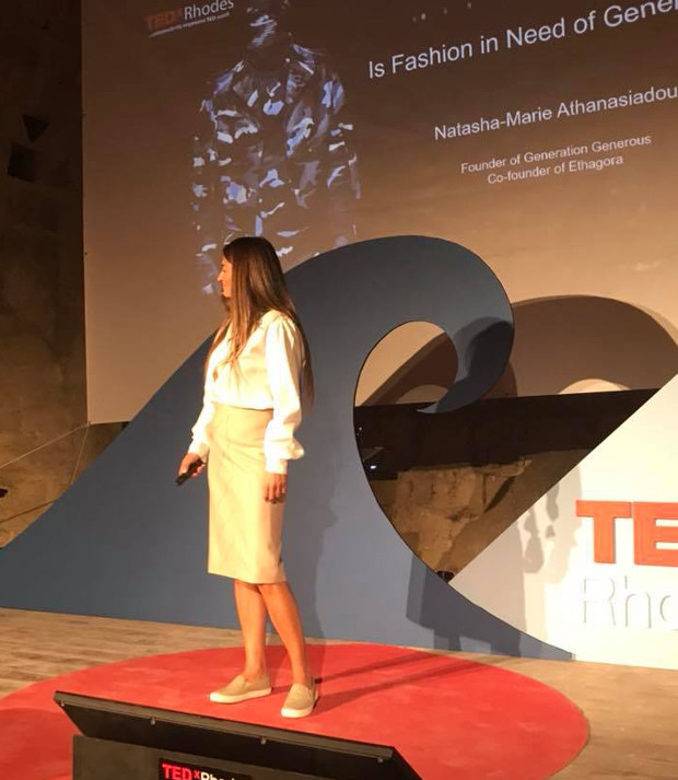 Η Νατάσα Αθανασιάδου είναι η ψυχή της κοινωνικής επιχείρησης Generation Generous. Ως ομιλήτρια στο TEDxRhodes 2017 μίλησε για την ηθική στη μόδα και την εξέλιξη της σε μια πιο αειφόρο ανάπτυξη μέσα από δίκαιες συνθήκες εργασίας αλλά και ανακυκλώσιμα υλικά που δεν θα βλάπτουν το περιβάλλον.