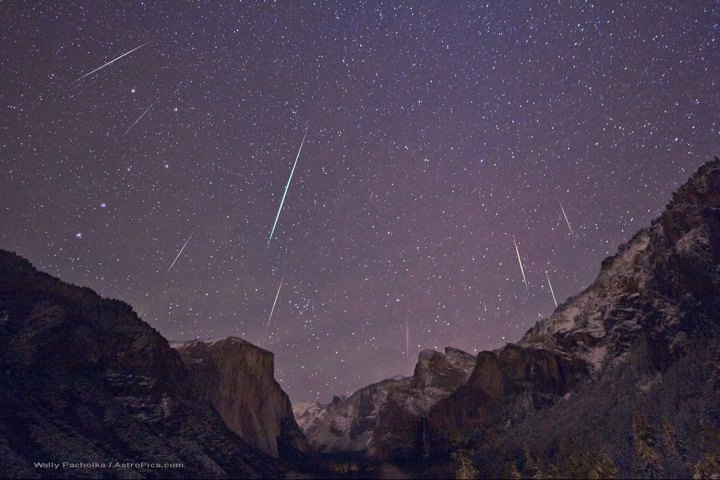 Η (Geminid) βροχή μετεωριτών πάνω από το Yosemite Valley στις 14 Δεκέμβρη 2012.