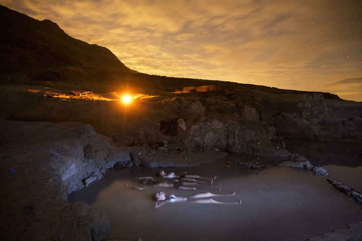 Ισραηλινοί απολαμβάνουν μια θερμή πηγή νερού στην ακτή της Νεκράς Θάλασσας παρακολουθώντας στον ουρανό την βροχή μετεωριτών (Geminid) στις 14 Δεκεμβρίου 2012
