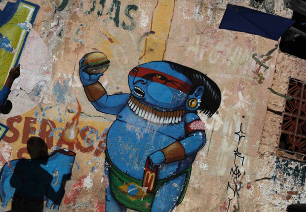 Μπορεί το Μουντιάλ να ξεκίνησε και όλος ο πλανήτης να χορεύει στους ρυθμούς της στρογγυλής θεάς, κάποια γκράφιτι όμως σε κεντρικά σημεία δρόμων, δείχνουν ότι δεν γιορτάζουν όλοι οι Βραζιλιάνοι. Προφανώς, από τη μια τα υπέρογκα έξοδα της διοργάνωσης-μιας και είναι το πιο ακριβό Μουντιάλ όλων των εποχών- από την άλλη, η φτώχεια που μαστίζει την χώρα της σάμπας, οι αντιδράσεις κάποιων Βραζιλιάνων αποτυπώνονται χαρακτηριστικά στους τοίχους.