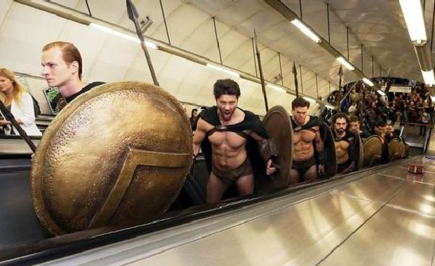 Με έναν πρωτότυπο τρόπο οι υπεύθυνοι προώθησης του DVD της ταινίας 300: Rise of an empire εισέβαλαν με 300 ηθοποιούς στο μετρό του Λονδίνου. Ημίγυμνοι άντρες ντυμένοι Σπαρτιάτες πολεμιστές μπήκαν στα βαγόνια και έκαναν βόλτα με τους έκπληκτους Λονδρέζους. Η ταινία αποτελεί συνέχεια της πρώτης ταινίας “300” με θέμα αυτή τη φορά τη Ναυμαχία της Σαλαμίνας. Εντυπωσιακό και το site της ταινίας