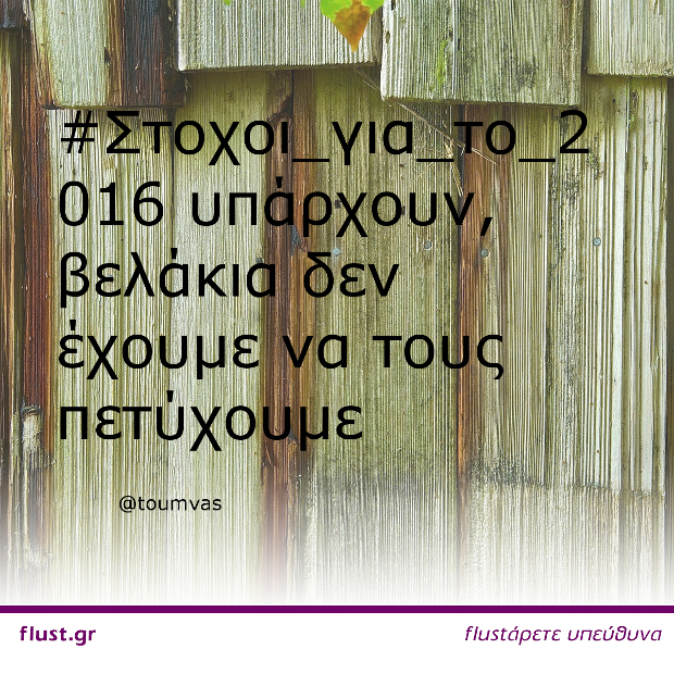 Και καθώς η χρονιά τελειώνει μπαίνουμε στην διαδικασία να βάλουμε κάποιους στόχους για την επόμενη. Όταν βρίσκεσαι όμως στο twitter οι #Στόχοι_για_το_2016 είναι σε άλλη διάσταση!
