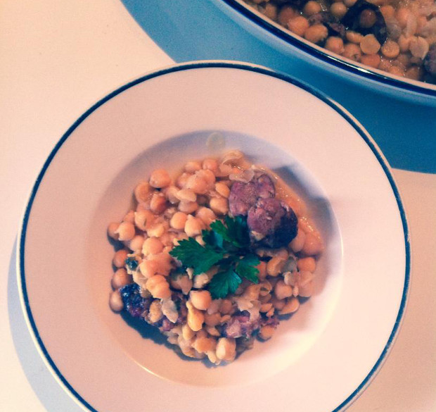 Θυμήθηκα, λοιπόν, να μουλιάσω τα ρεβύθια αποβραδίς, κάτι που ξεχνάω συνέχεια, γι’αυτό κι έχει αναβληθεί πολλές φορές αυτό το φαγητό. Τα άφησα όλη νύχτα σε μπόλικο νερό με 1 κουτ. σούπας σόδα. Το πρωί τα ξέπλυνα πολύ καλά και τα άφησα στο καθαρό νερό μέχρι αργά το μεσημέρι. Δεν ξέρω αν έφταιγε το γεγονός ότι έκανα καλό μούλιασμα ή αν είναι η συγκεκριμένη ποικιλία ρεβυθιού τέτοια, πάντως για πρώτη φορά έβρασαν πάρα πολύ εύκολα και πιο γρήγορα από άλλες.