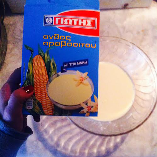 Την άλλη κρέμα που θέλει βράσιμο, την παίρνω μόνο το χειμώνα και προτιμώ τη βανίλια. Κάθε κουταλιά βγάζει μια ζεστασιά! Σήμερα την έφτιαξα λίγο διαφορετική. Πρόσθεσα στο γάλα που βράζει, 1 σφηνάκι λικέρ μαστίχας και ξύσμα λεμονιού. Ανακάτεψα με τη σκόνη και το κρύο γάλα, σύμφωνα με τις οδηγίες του πακέτου και άφησα λίγο να έρθει σε θερμοκρασία δωματίου. Σέρβιρα με νιφάδες βρώμης. Υπέροχο!
