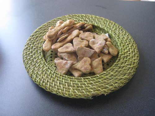 4) Το αβγό είναι καλή πηγή πρωτεϊνών, αλλά να μην κάνετε υπερβολές. Αν βάλετε ένα αβγό μέσα στα μπισκότα σας, είναι μια χαρά. Το κρέας φυσικά και το κοτόπουλο, είναι τα πρώτα σε διατροφική αξία. Μπορείτε να προσθέτετε ζωμό κρεατικών ή κρέας αλεσμένο μέσα στα μπισκότα.