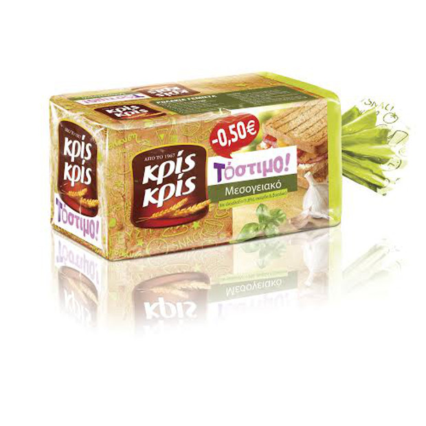 To Κρις Κρις «Τόστιμο!» Μεσογειακό, με Σκόρδο και Βασιλικό είναι ένα σταρένιο, αφράτο ψωμί τοστ με ελαιόλαδο, που θα μας προσφέρει μια νέα γευστική εμπειρία και θα αναβαθμίσει το καθημερινό μας σάντουιτς.