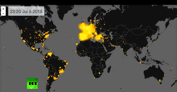 Με ένα graphics που δημοσίευσε το RT φαίνεται πώς το αποτέλεσμα του Οχι στο ελληνικό δημοψήφισμα στις 5 Ιουλίου έκανε το twitter να ανατιναχτεί από χιλιάδες tweets στην Ευρώπη.